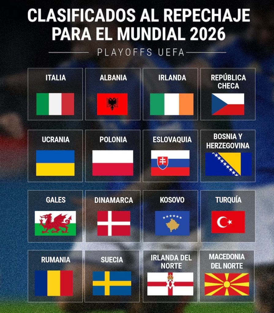 CÓMO SE JUGARÁ EL REPECHAJE QUE REPARTIRÁ LOS ÚLTIMOS 6 BOLETOS PARA EL MUNDIAL 2026